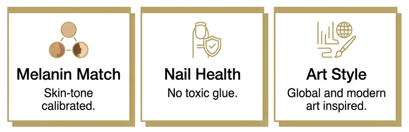 Culture-inspired art on pro‑grade soft gel tips with polish that are toxin‑free, chip‑resistant and fade‑resistant